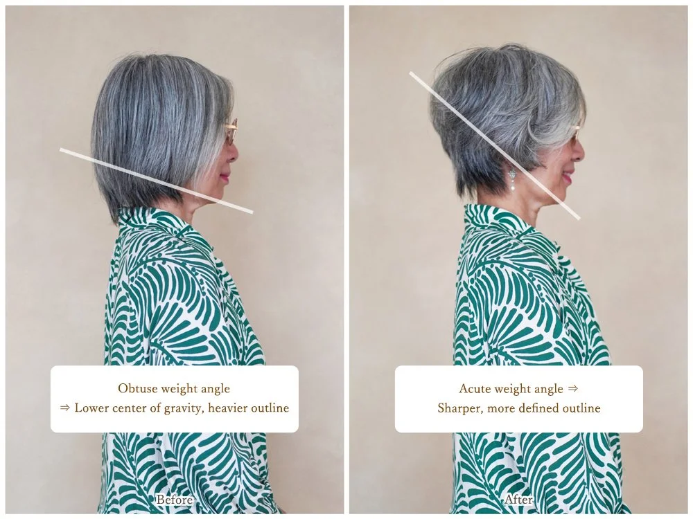 When designing gray hair, simply following trends can sometimes make the look appear older. Instead, adding a touch of edge — a small but intentional design detail — elevates the entire style and prevents it from feeling conventional.