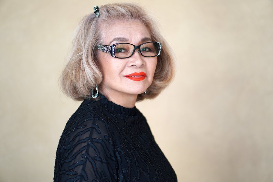 本日のお客様は白髪を活かしたブロンドカラーの美しい嶋脇麗さん、74歳。