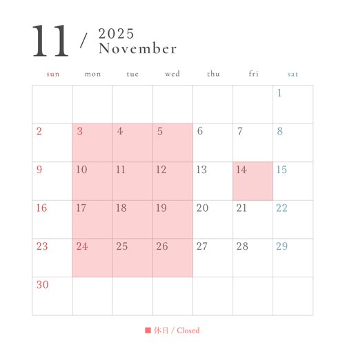 11月14日(金)は、外部での撮影業務のためサロンを休業させて頂きます。