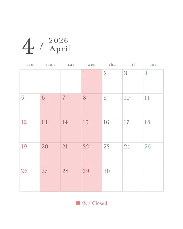 4月スケジュール Schedule for April